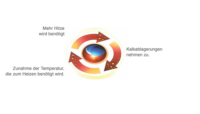 Durch die Erhitzung des Wassers nimmt die Bereitschaft zur Kalkablagerung deutlich zu.