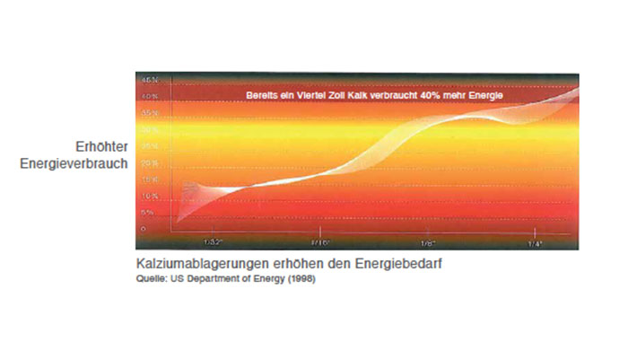 Je stärker die Verkalkung der Leitungen, desto mehr Energie wird